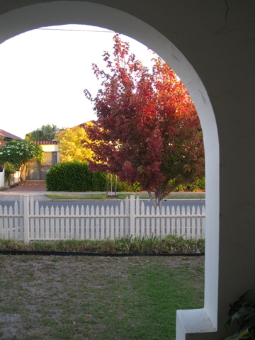 Some of the deciduous trees have also put on their Autumn outfit, displaying a full blast of colours before they fall asleep for Winter. I took the picture above from the front door of my house through the porch – the scenery struck me as I looked out of through the door. I thought, Autumn was truly here. The picture was taken in mid-April when Adelaide was really dry-as-a-bone. Since then we have received a lot of rain so the frontyard and the backyard are looking lush again. The maple tree in front of the house has lost most of its leaves as well so I took the picture just in time! I love how the crimson from the maple tree complements the golden leaves of the tree across the road.